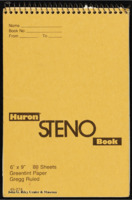 A notebook of handwritten notes by Thelma T. Gorham. The notebook includes notes on the topic of speech, drafts of letters, contact information, and other miscellaneous jottings. Gorham also writes about a reception for Sue K. Russell and includes a master list of guests and printed program for the reception tucked into the notebook. Glued into the notebook is a newspaper clipping about ethnic holiday foods.