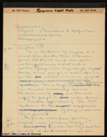 A legal pad of handwritten notes by Thelma T. Gorham. The notes include a draft of a letter proposing Gorham's dissertation topic to Justice Thurgood Marshall as well as additional drafts of letters related to the completion of her PhD, her book, and other miscellaneous topics. -