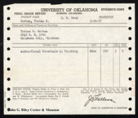 A final grade report for the course "Audio-Visual Materials in Teaching" at the University of Minnesota for Thelma T. Gorham -
