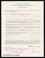A transfer receipt from the University of Oklahoma Office of Admissions and Records, for Thelma T. Gorham -