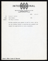 A letter from Valo JorDan to Thelma T. Gorham concerning the upcoming OIC Africa trip. -